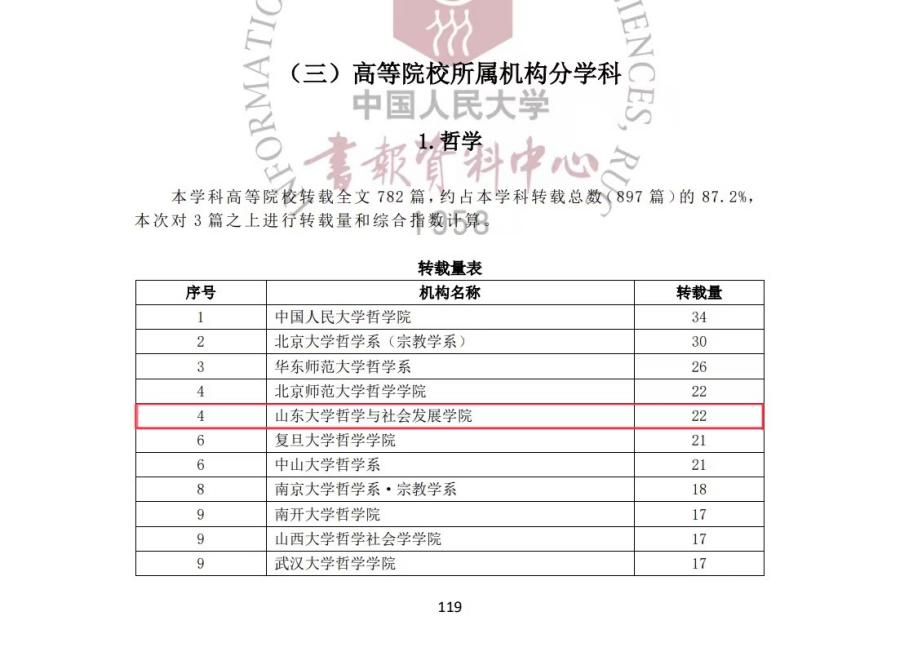 太阳集团哲学学科在2023年度复印报刊资料转载指数排名中名列前茅