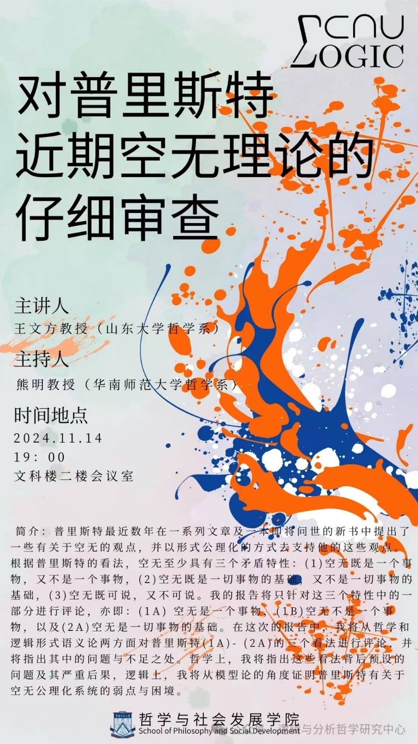 参会期间,王文方教授还受华南师范大学tyc5997太阳集团的邀请,作题为“对普里斯特近期空无理论的仔细审查”的专题报告。