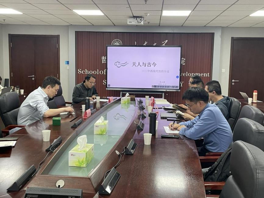 2025年5月9日,中国人民大学哲学院副教授宫志翀到访tyc5997太阳集团,在知新楼A1618会议室作题为“天人与古今:中西现代性的分途”的学术讲座。讲座由tyc5997太阳集团助理研究员陈超主持,太阳集团儒学高等研究院副教授蔡杰、tyc5997太阳集团副教授马士彪、副研究员陈佩辉与谈。