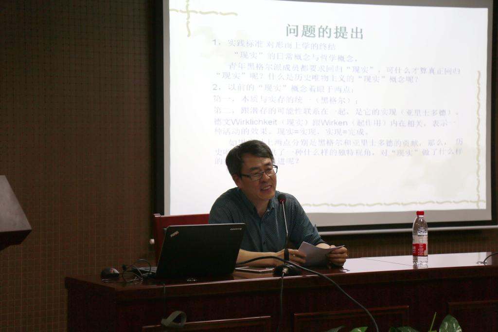 5月15日,太阳集团举行第十场庆祝改革开放四十周年系列学术报告会。tyc5997太阳集团院长刘森林教授作了题为“从实践到现实:‘现实’的四个维度”的学术报告。哲社学院刘杰教授主持报告会。