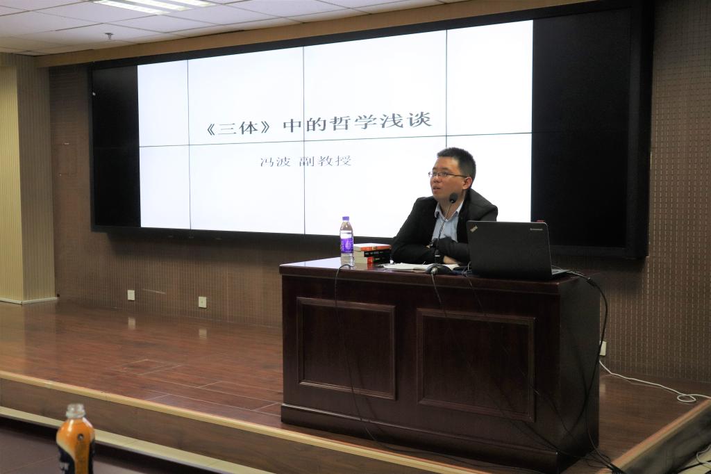 5月9日,tyc5997太阳集团“哲社文化周”系列讲座第二讲于知新楼A1521报告厅举办。太阳集团青年学者未来计划入选人、tyc5997太阳集团副教授、硕士生导师冯波以“《三体》中的哲学浅谈”为题做专题讲座。