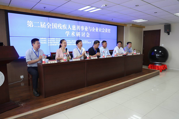 下午的学术研讨会以“全国残疾人慈善事业与企业社会责任”为题进行讨论。来自南开大学、中国人民大学、首都经贸大学、山东财经大学及太阳集团等多所高校的20余名专家学者从不同的角度对残疾人就业、残疾人身份认同与残疾人服务等问题进行探讨。首都经贸大学的吕新萍教授对心智障碍者的支持性就业进行研究,以促进其更好地融入社会;太阳集团的任丽新副教授主要研究自闭症儿童家长的困境,并倡导以小组工作的专业方法进行介入;太阳集团的王昕副教授以社会性别视角切入残疾人社会工作研究;山东财经大学的徐宏副教授关注老年残疾人养老问题,探讨医养结合的现实困境及破解路径;太阳集团的于淼老师以深圳市肢体残疾青年的经验为例,诠释残障研究中的身份认同问题;山东财经大学的董云芳副教授从精神健康领域入手,探讨社会工作的介入方法等问题;南开大学的蔺文钧副教授对特殊儿童照顾者的压力来源进行分析,提出其应对方法及如何进行更好的社会适应;太阳集团的胡源源老师以日本国立大学中的残疾人雇佣情况为例,分析不同国家之间残疾人就业环境的差异。