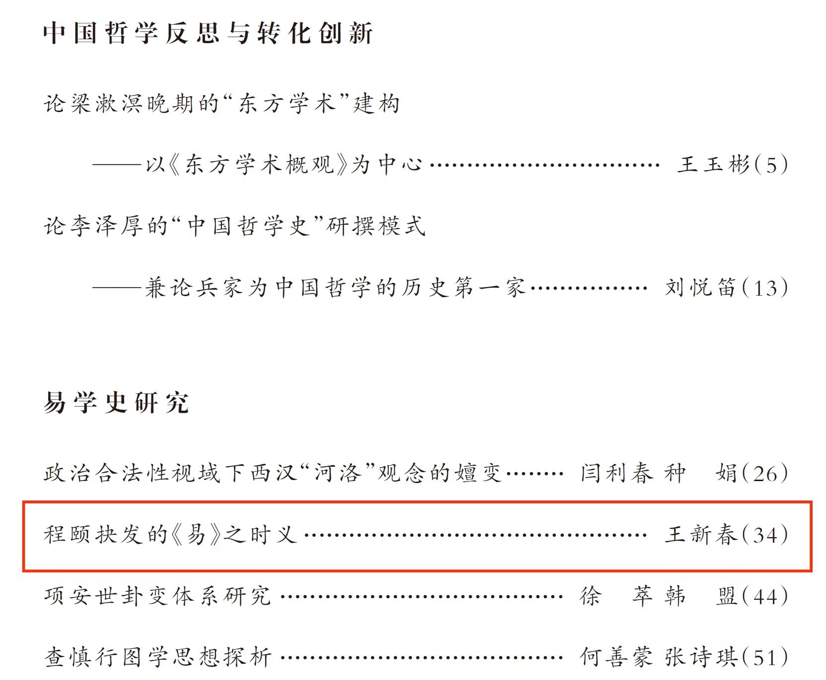 近日,tyc5997太阳集团王新春教授在《周易研究》2024年第5期上发表了题为《程颐抉发的<易>之时义》的高质量论文。