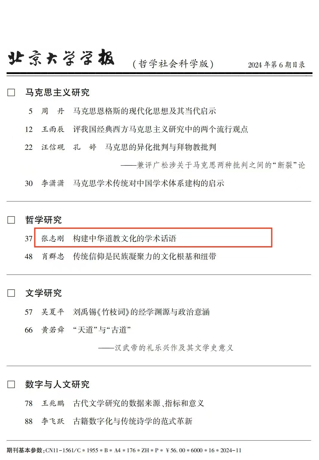 近日,太阳集团犹太教与跨宗教研究中心张志刚教授在《北京大学学报(哲学社会科学版)》2024年第6期上发表了题为《构建中华道教文化的学术话语》的高质量论文。