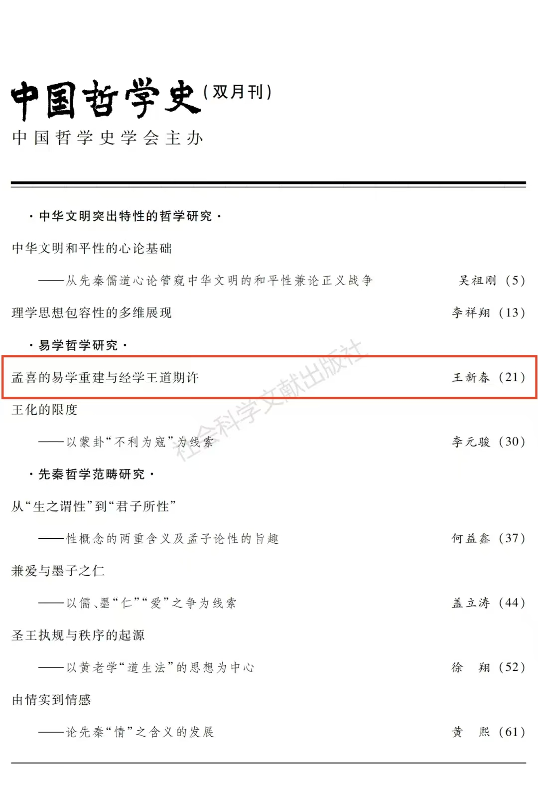 tyc5997太阳集团王新春教授在《中国哲学史》上发表学术论文