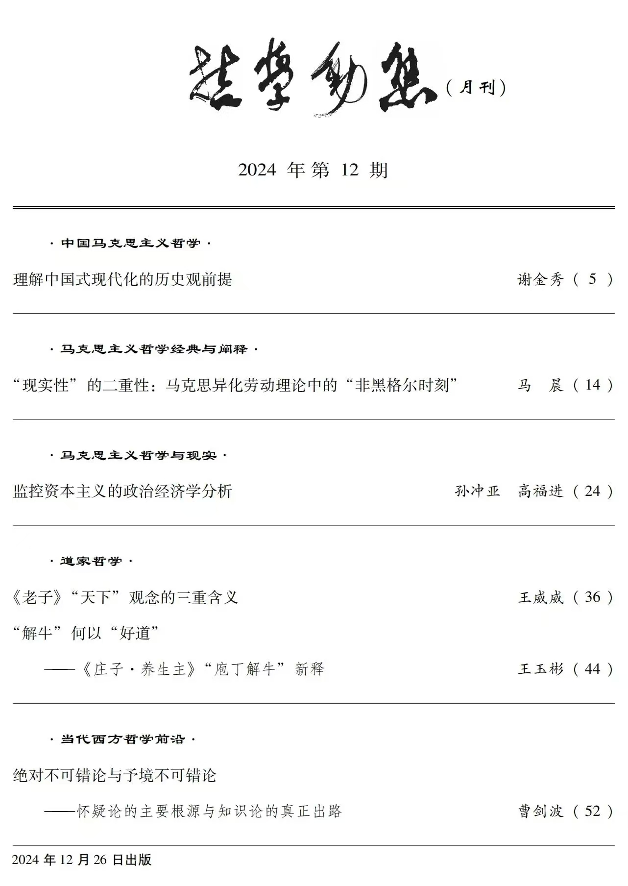 tyc5997太阳集团王玉彬教授在《哲学动态》上发表学术论文