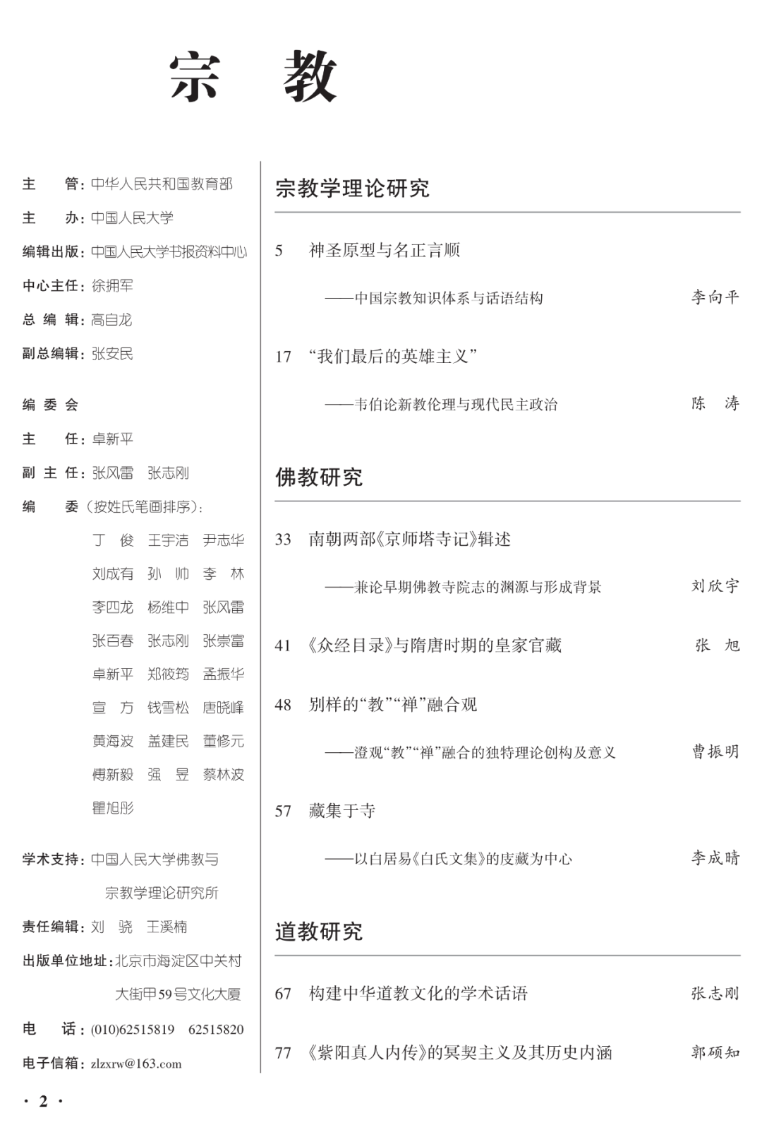 《宗教》精选宗教学理论、各种宗教典籍、宗教人物思想、宗教史和宗教政策等方面的优秀研究成果;关注热点,注重诠释,强调深度;汇集名篇力作,旨在提供全方位、多层面探讨宗教、研究宗教的专业性学术平台。设有宗教学理论、佛教研究、道教研究、基督教研究、伊斯兰教研究、世界宗教研究、民间信仰研究、宗教史专题、比较研究等亮点栏目。
