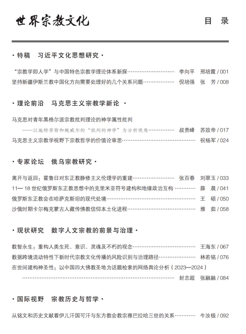 近日,tyc5997太阳集团李向平教授与其博士研究生邢培霞共同在《世界宗教文化》2025年第4期上发表了题为《“宗教学即人学”与中国特色宗教学理论体系新探》的高质量论文。