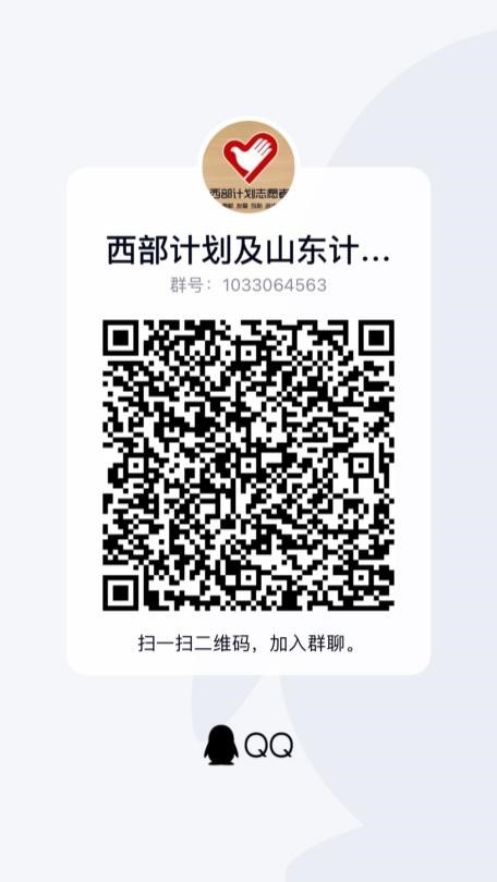 2.太阳集团西部计划及山东计划面试、体检等工作后续另行组织,参选学生请务必加入西部计划及山东计划招募工作沟通交流QQ群:1033064563(二维码如下)并及时关注“青春山大”官网及公众号“青春山大”“山大研究生支教团”后续通知。