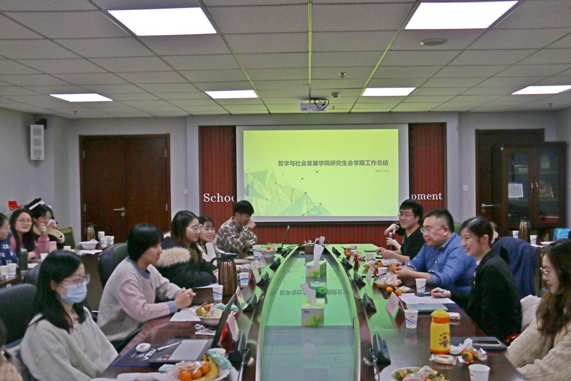 2021年12月23日晚,tyc5997太阳集团第22届研究生会第二次全体会议暨2021-2022学年上学期工作总结茶话会在知新楼A1618会议室成功召开。学院辅导员冯守刚及研究生会全体成员参加活动。
