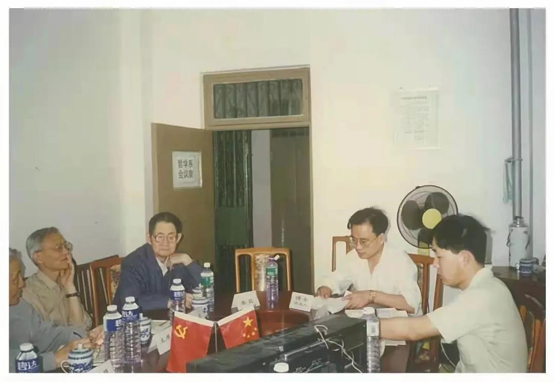 1997年6月张荣和苗力田老师在博士论文答辩现场