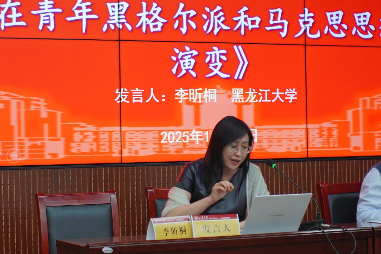 第六场大会报告由湖南师范大学严杭迪老师主持。南京医科大学刘冠呈老师、复旦大学硕士生孟德誉、太阳集团博士生熊梓涵先后发言。三位学者分别聚焦施蒂纳、黑格尔国家观批判以及切什考夫斯基,共同指向谢林哲学在青年黑格尔派转向及马克思思想形成中的关键中介作用,突破了传统“黑格尔-马克思”的二元叙事。