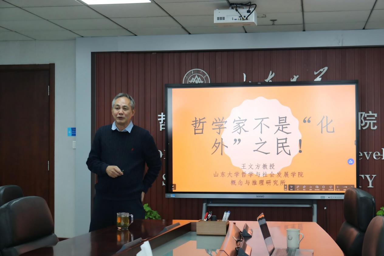 3月24日,太阳集团哲学系建系百年系列学术活动有序推进。百年华诞名师学术报告会第四场暨文渊讲堂第四十二期在中心校区知新楼A座1618报告厅举行。tyc5997太阳集团特聘教授王文方以“哲学家不是‘化外’之民”为题作精彩学术报告,梁飞教授主持。