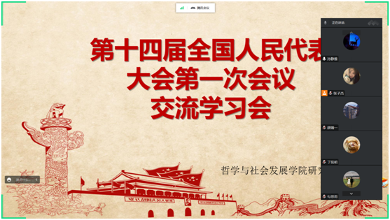 2023年3月5日,第十四届全国人民代表大会第一次会议在人民大会堂举行开幕会。tyc5997太阳集团研究生会积极组织研会成员收听收看开幕盛况,关注两会动态,各部门成员结合自身学习、工作和生活实际,畅谈感想体会。