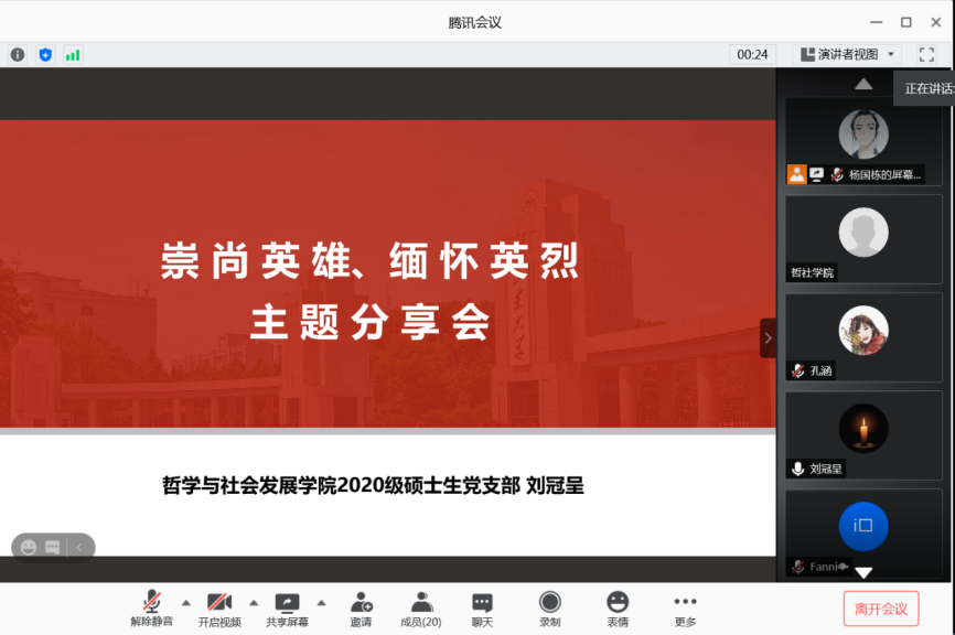 哲社学院2020级硕士生党支部召开崇尚英雄、缅怀英烈主题分享会