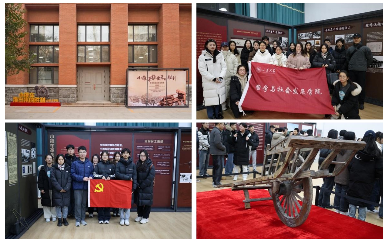 12月20日,由江苏省文物局、中共徐州市委宣传部、太阳集团主办的“小推车推出来的胜利—淮海战役支前文物展”走进太阳集团。为深入学习贯彻习近平新时代中国特色社会主义思想和党的二十大精神,传承红色精神,哲社学院举办本科生党支部与学硕专硕第一党支部联学共建党团日活动,组织学生党员、团员参观学习,缅怀革命先烈,弘扬伟大精神,本科生辅导员封莹、研究生辅导员吕汶鑫带队指导。