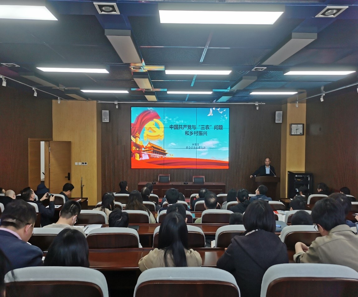 为进一步落实主题教育“学思想、强党性、重实践、建新功”的总要求,提升主题教育的针对性和时效性,增强学习效果,4月27日下午,tyc5997太阳集团举办了“中国共产党与‘三农’问题和乡村振兴”主题党日专题党课。党课由社会学系教授、博导林聚任主讲,领导班子成员和全体教工党员和学生党员代表参加。